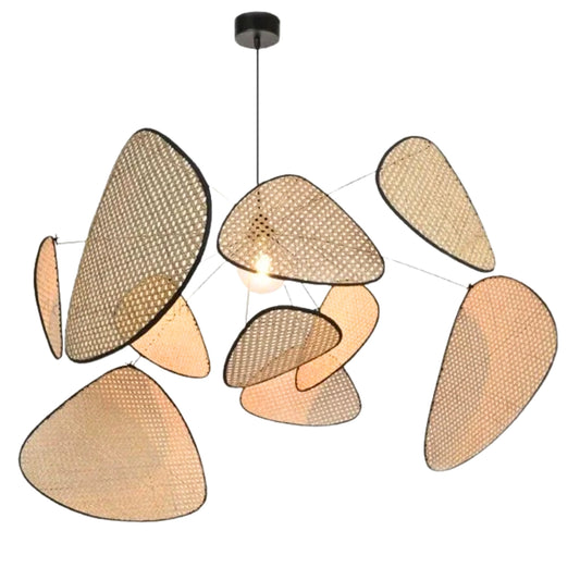 Our largest pendant light offering features overlapping organic shapes that create flowing, sculptural silhouettes perfect for grand living rooms and high-ceiling spaces. Customer reviews highlight its ability to fill large volumes while maintaining visual lightness through open construction.