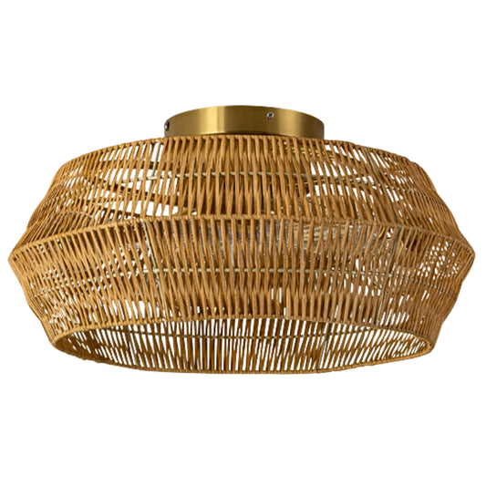 These fixtures adapt beautifully across design aesthetics: From Japandi minimalism with cleaner drum forms to coastal looks with looser weaves, or desert modern with terracotta accents. The key is balancing the organic texture with smooth surfaces like ceramic and metal to avoid an overly themed appearance.