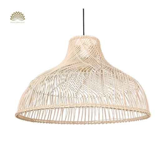 Available in 16", 20", and 24" sizes, suitable for living rooms, bedrooms, kitchens, and restaurants. The open weave ensures gentle, ambient lighting.