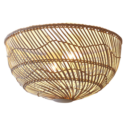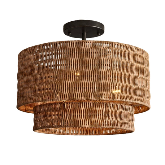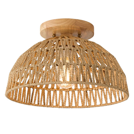 These fixtures adapt beautifully across design aesthetics: From Japandi minimalism with cleaner drum forms to coastal looks with looser weaves, or desert modern with terracotta accents. The key is balancing the organic texture with smooth surfaces like ceramic and metal to avoid an overly themed appearance.